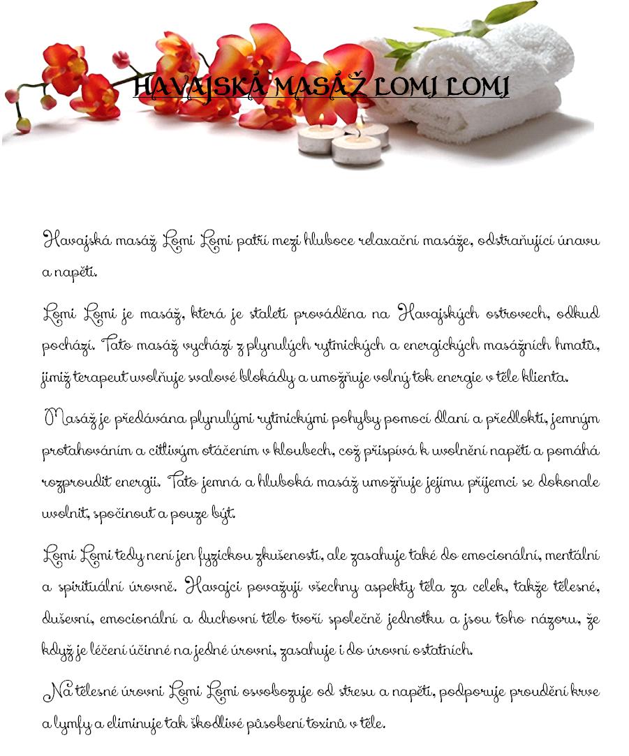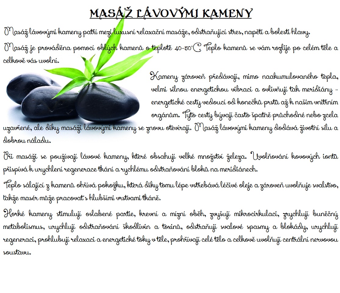 If you are interested in a massage, please contact us in advance on telephone number +420 734 622 699 or